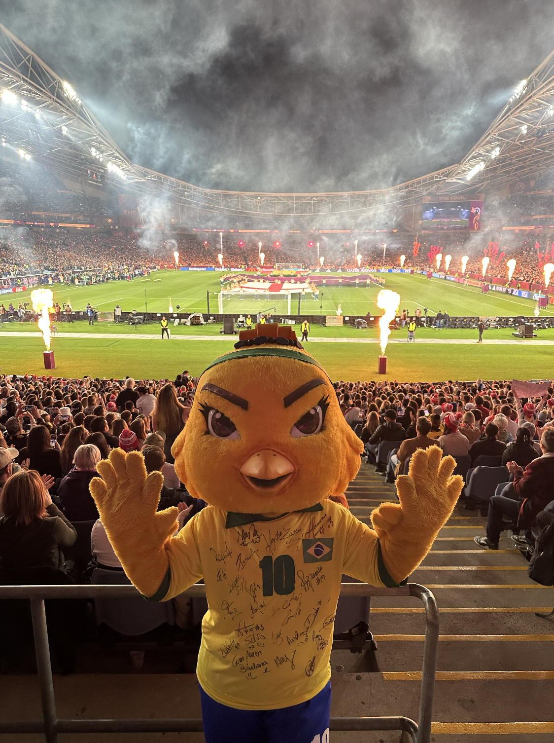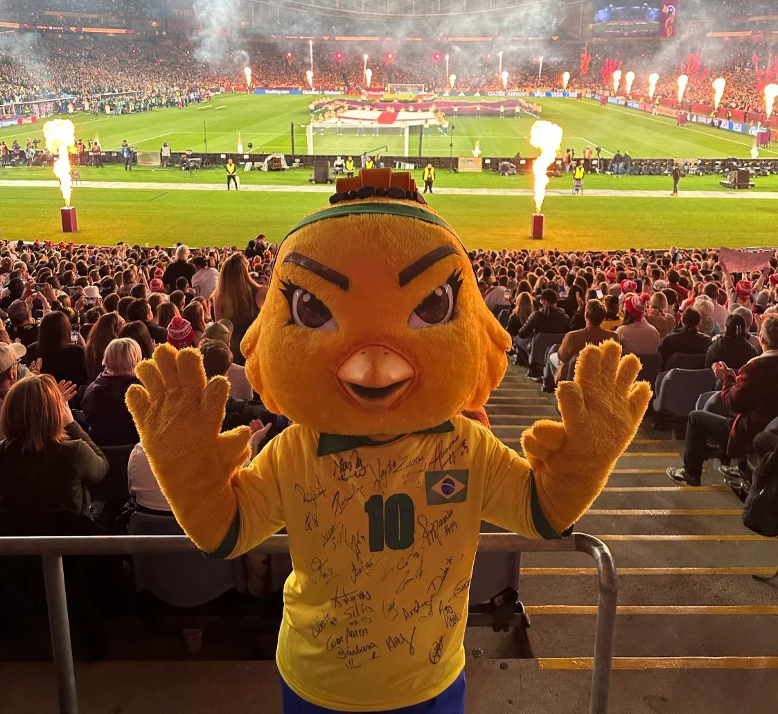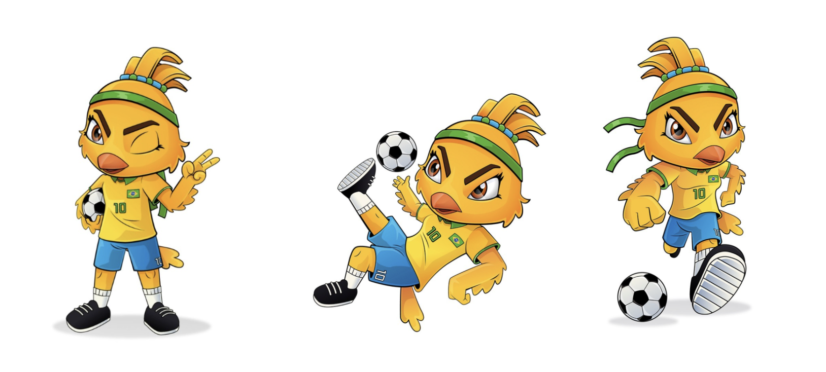 About a month prior to the 2023 WWC, we realised that the Brazil Women’s Team was going to Australia without a mascot that represented their very own spirit. So we decided to create one for them: Canarinha Guerreira ('Little Canary Warrior’).