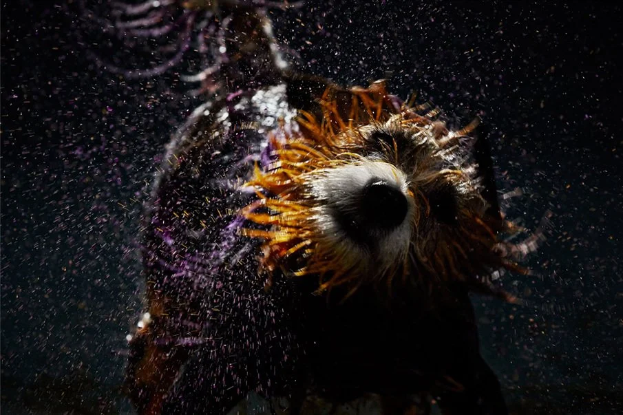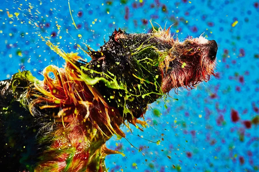 The shake of the paint reveals a remarkable exercise of freedom, where each drop of ink bears the stain of prejudice. The combination of different colours in the paintings shows the mixture of breeds, as random and as beautiful as each mongrel dog.