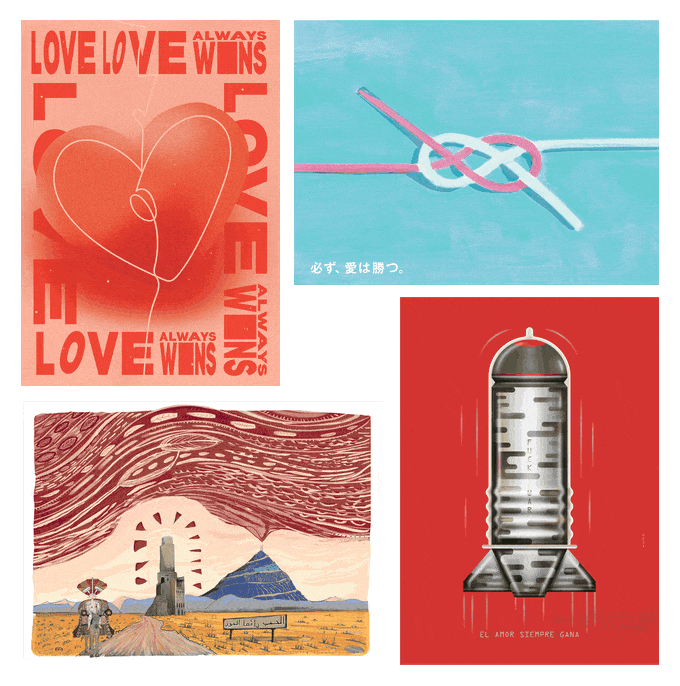 So, we invited one artist from each country in the world to create an artwork with the sentence "Love Always Wins" written in their native language.